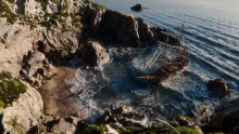 "I created this pirate bay in Blender and simulated the waves crashing into the bay with Flip Fluids. The ship I made myself a while ago and it took me several approaches to get the waves coming in to look right."